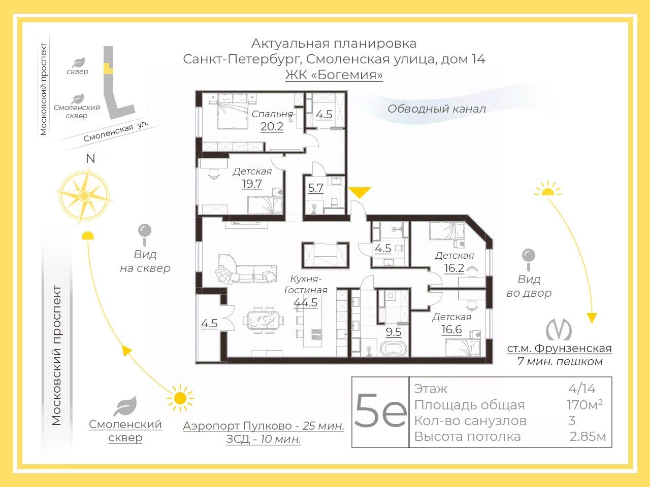 Арт. 111880669 В Продаже просторная семейная квартира с дорогим ремонтом в ЖК "Богемия", в зеленом Московском районе на границе с центром.