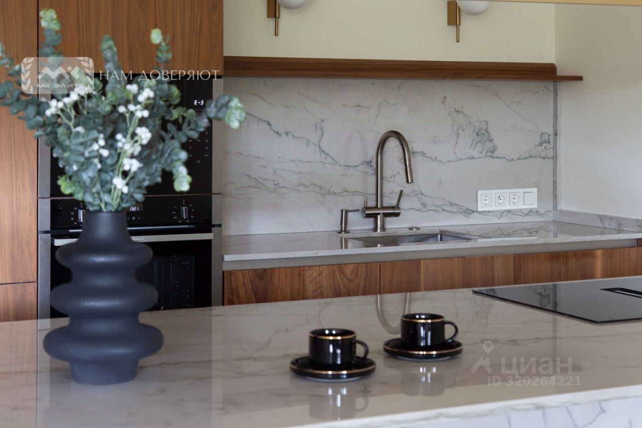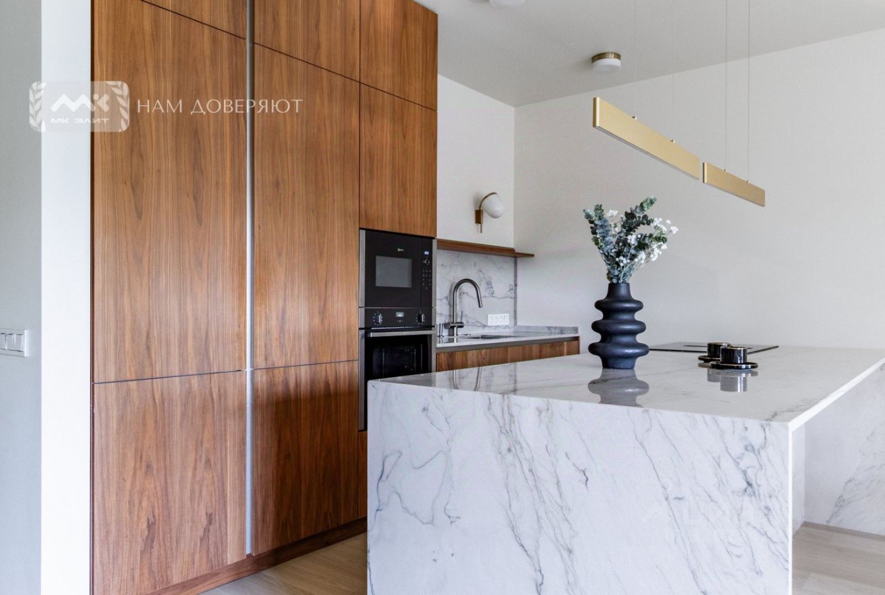 * Кухня из шпона ореха, остров из натурального гранита, встроенная техника Neff