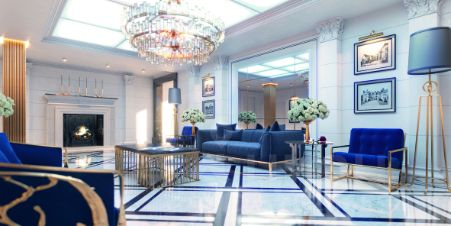 * Премиальные удобства на первом этаже: ресепшн, лобби-бар, гостиная, сигарный салон, переговорная, спортзал с тренажерами, массажный кабинет, сауна, барбершоп и салон красоты ROS.