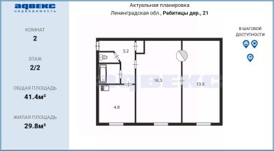 Продается 2-комнатная квартира в дер. Рабитицы, в 5 км. от Волосово, 65 км. от СПб.