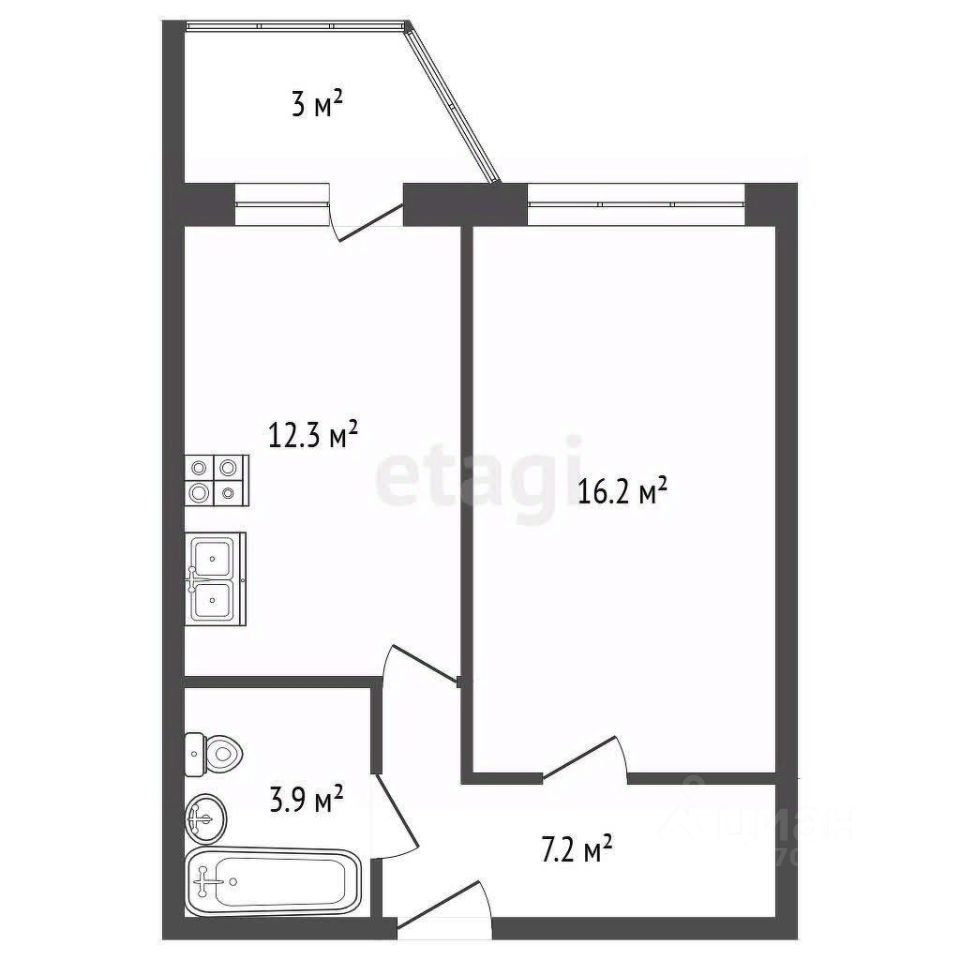 Кухня-гостиная 16,2 кв. м, изолированная спальня 12,3 кв. м, совмещенный санузел с современной сантехникой и застекленный балкон 3,3 кв. м. Квартира полностью готова к проживанию -заезжай и живи.