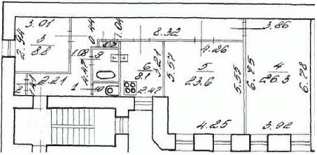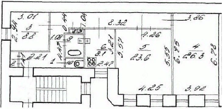 3-х комнатная квартира находится на 3-м этаже 4-х этажного кирпичного дома постройки 1917 года.