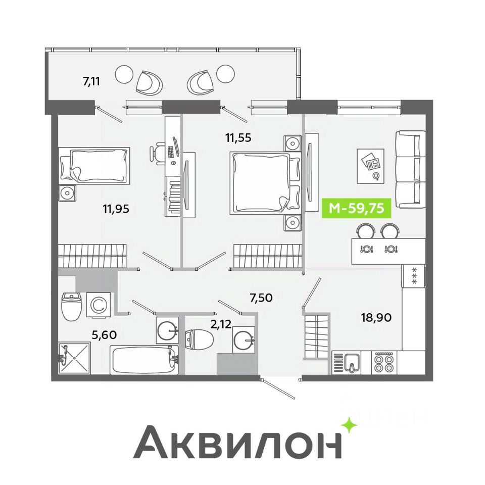 Продаётся 3-комнатная квартира в строящемся доме (Корпус В), срок сдачи: IV-кв. 2026, общей площадью 59.75 кв.м., на 12 этаже. Жилой комплекс комфорт-класса Янино находится в одной из самых перспективных локаций, в непосредственной близости от Санкт-Петербурга. Локация уникальна по количеству объектов инфраструктуры, транспортной доступности и расположению природных достопримечательностей.