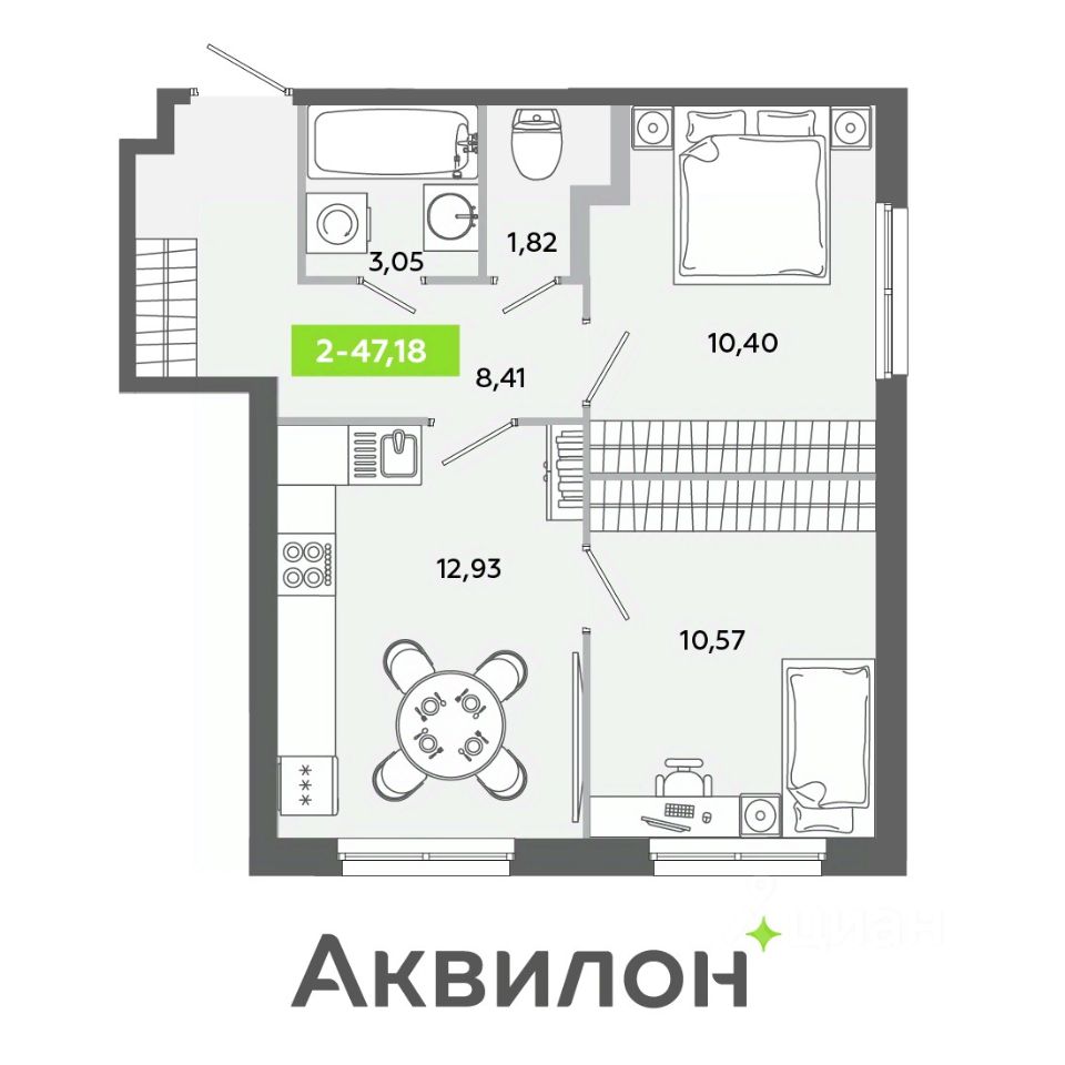 Продаётся 2-комнатная квартира в строящемся доме (Корпус В), срок сдачи: IV-кв. 2026, общей площадью 47.18 кв.м., на 1 этаже. Жилой комплекс комфорт-класса Янино находится в одной из самых перспективных локаций, в непосредственной близости от Санкт-Петербурга. Локация уникальна по количеству объектов инфраструктуры, транспортной доступности и расположению природных достопримечательностей.