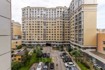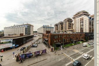 Квартира двухсторонняя, расположена на комфортном 5 этаже, при этом на Киевскую улицу открывается приятны вид на город, тк здание напротив реконструировано в стиле лофт и имеет всего 3 этажа. В парадной сидит консьерж.