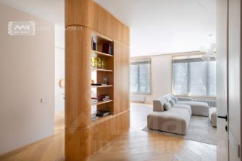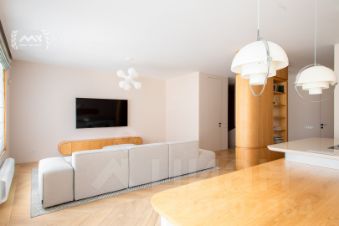 Квартира с эксклюзивным дизайнерским ремонтом встречает просторной прихожей с вместительной гардеробной , отделенной от жилой зоны красивой деревянной лестницей.