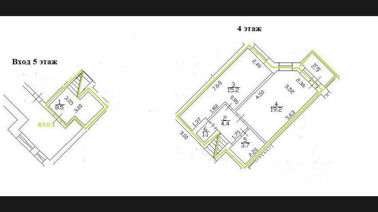 Квартира расположена на 5 этаже и переходом на 4 этаж.