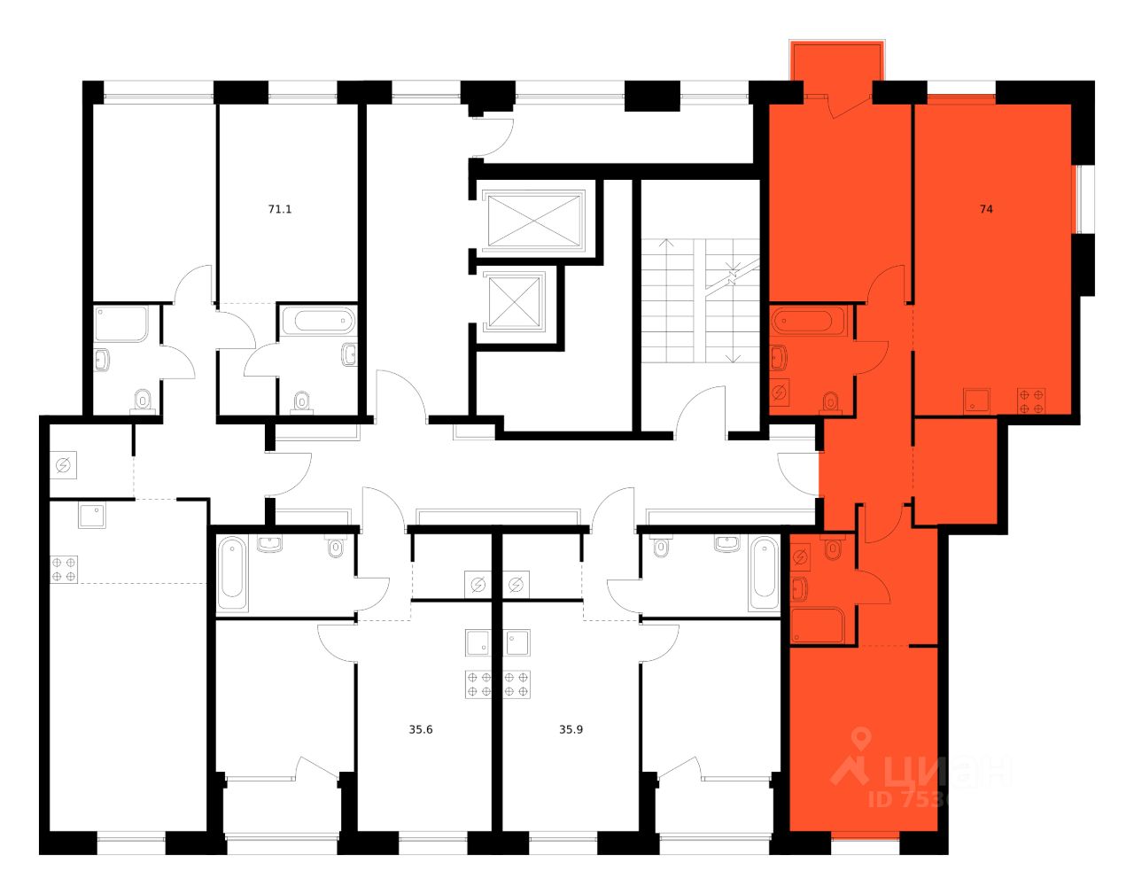Продаётся 2-комн. квартира площадью 74 кв.м на 7 этаже 12 этажного дома (Корпус 2, Секция 2) проекта ПИК Шкиперский 19. Светлый просторный подъезд на уровне земли, функциональная планировка, большие окна, без отделки.