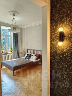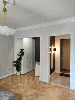 Квартира располагается в надежном сталинском доме с монументальной архитектурой, с высокими потолками и просторными комнатами.