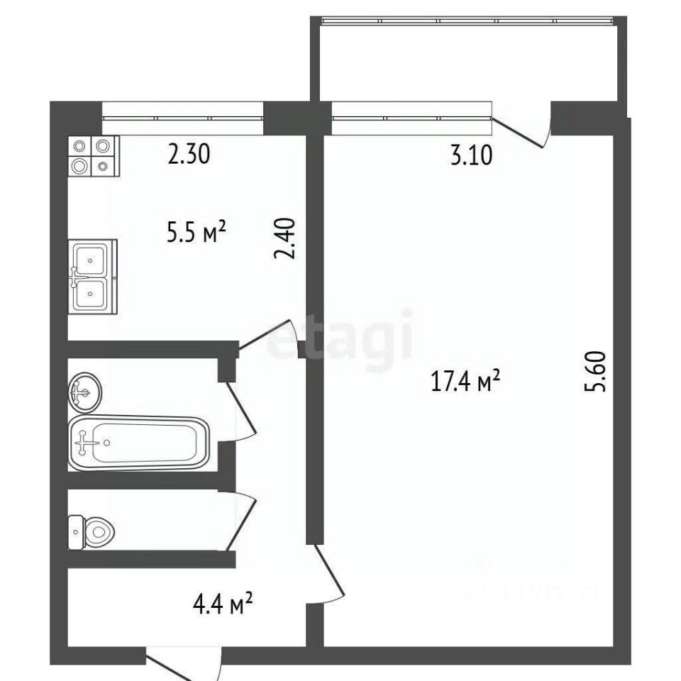 Сан.узел раздельный. Ванна - 2 кв.м. Туалет- 1,3 м.кв.