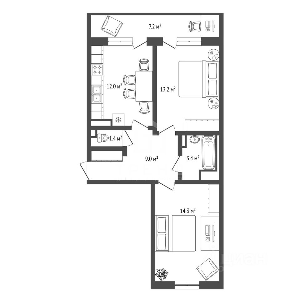 Двухкомнатная квартира площадью 53,3 кв. м на проспекте Ветеранов, 171. Этот объект — идеальное сочетание комфорта и безопасности. Квартира расположена на 12 этаже кирпично-монолитного дома, построенного ведущим застройщиком города в 2017 году. Вас порадует современный дизайнерский ремонт, в котором все продумано до мелочей, удобства расположения дома в непосредственной близи от торгового центра Солнечный, двух школ, детских садов и поликлиники. В шаговой доступности - все что, надо для комфортной городской жизни.