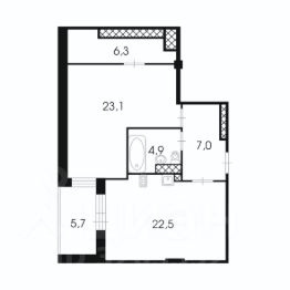 Площадь по ЕГРН 63,8 кв.м. + лоджия 2,9 кв.м.