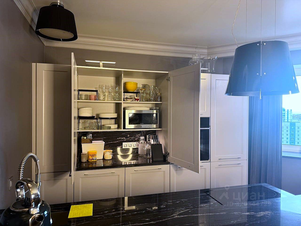 Установлена дорогая линейка кухни (на заказ). Вся техника (варочная, холодильник, духовой шкаф, стиральная машина, посудомоечная машина) встроена (не китайского производства). Предусмотрены места для хранения.