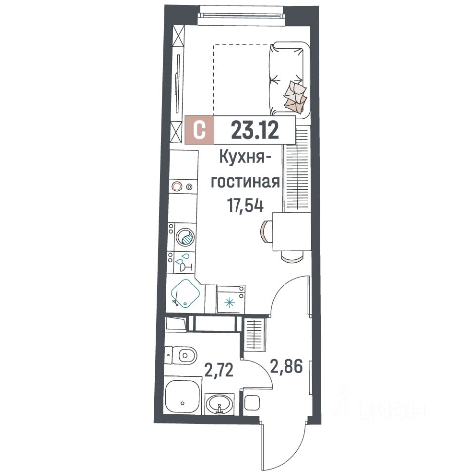 Общая площадь23,12 м²