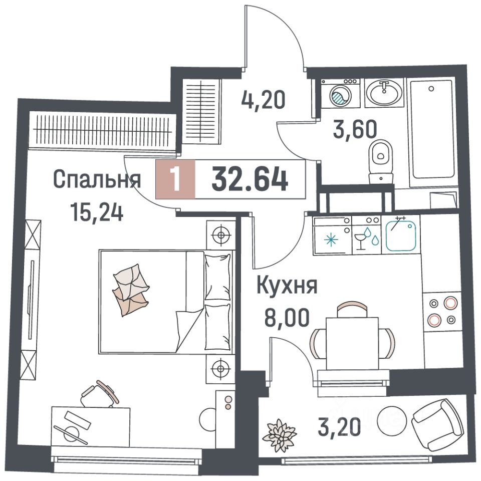 Общая площадь32,64 м²