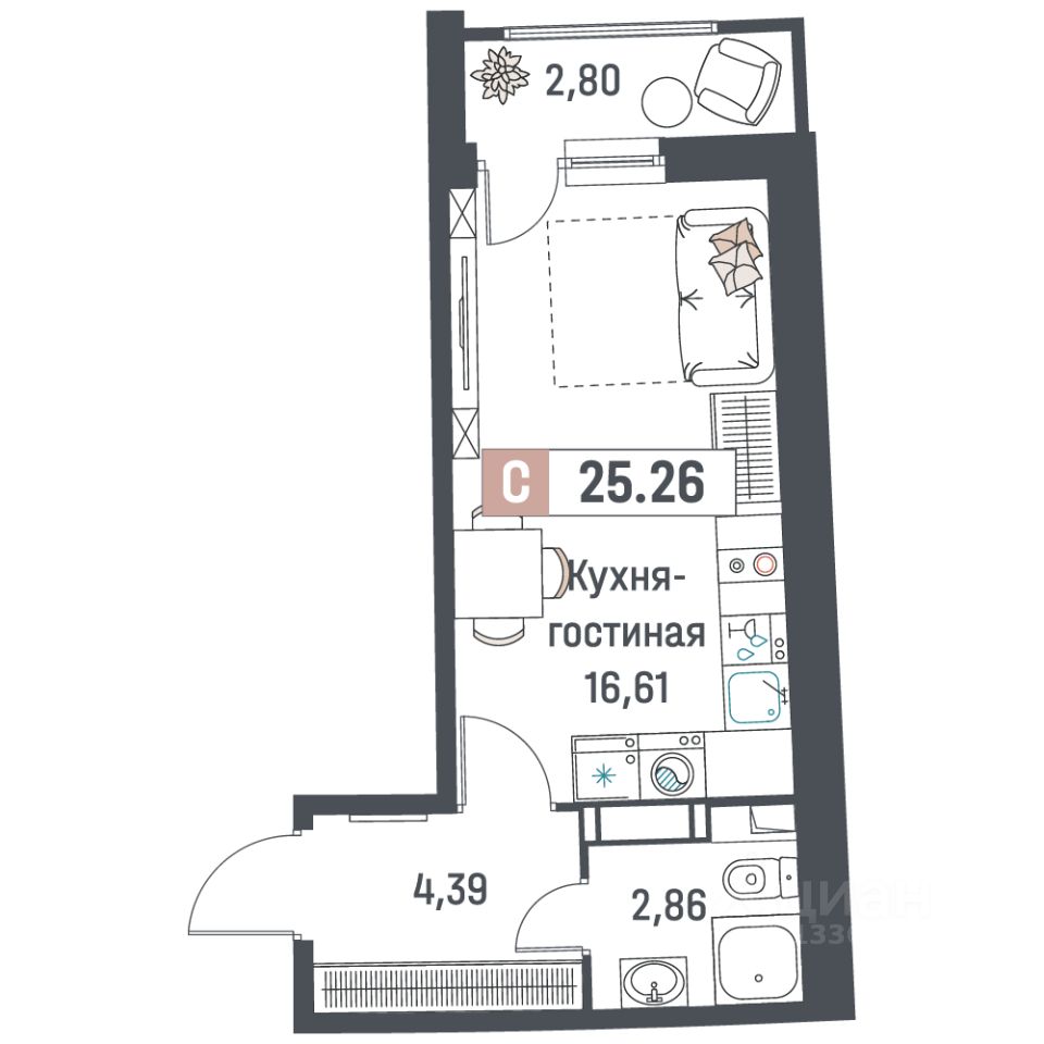 Общая площадь25,26 м²