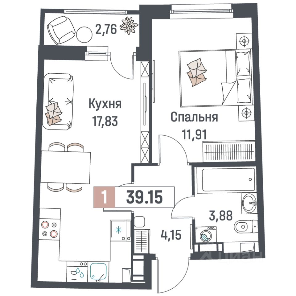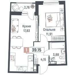 Общая площадь39,15 м²
