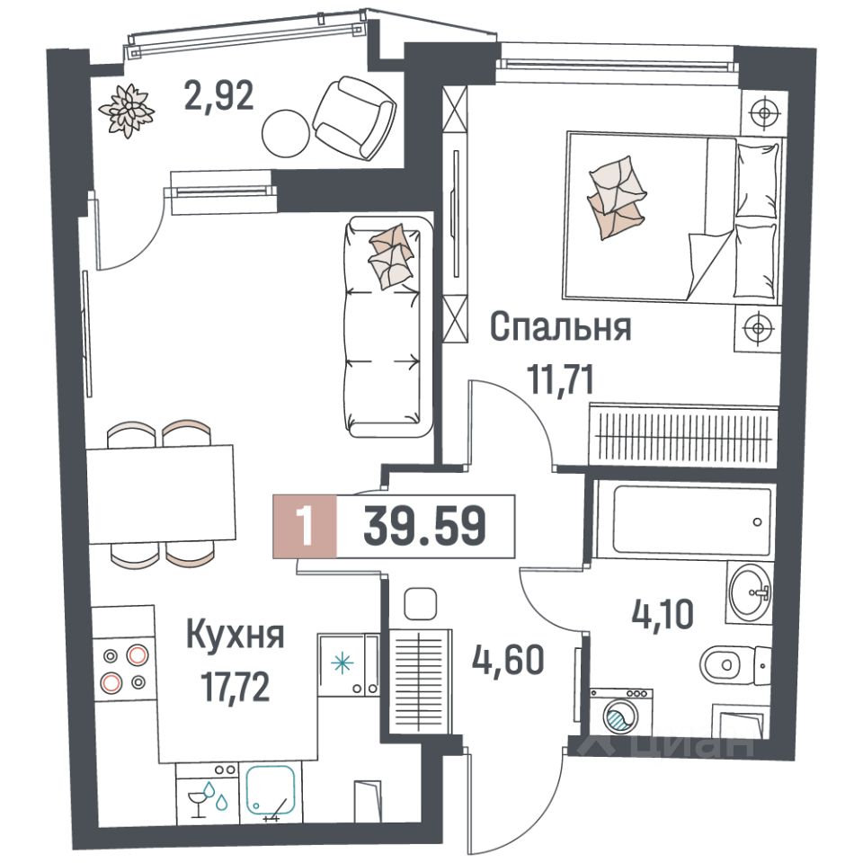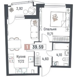 Общая площадь39,59 м²