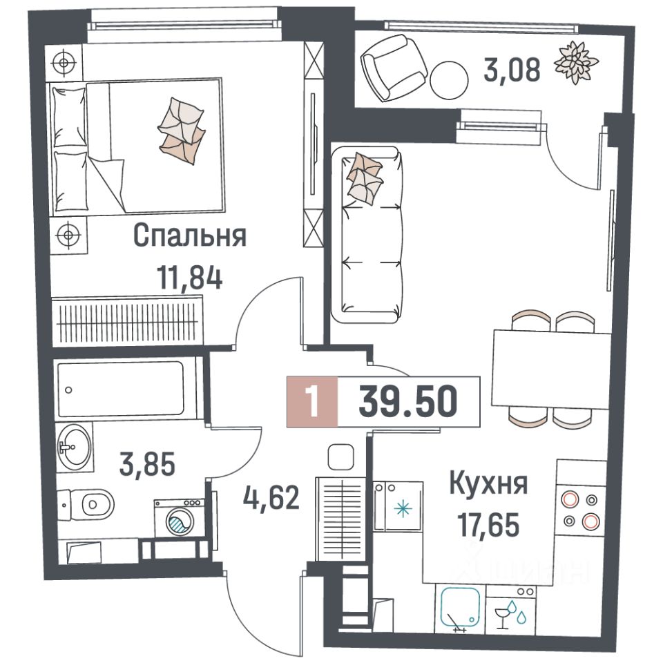 Общая площадь39,5 м²