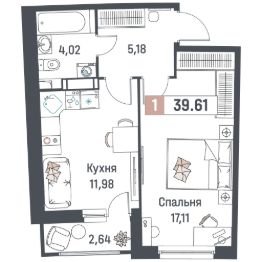 Общая площадь39,61 м²