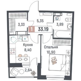 Общая площадь33,19 м²