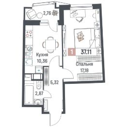 Общая площадь37,11 м²