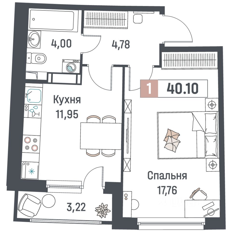 Общая площадь40,1 м²