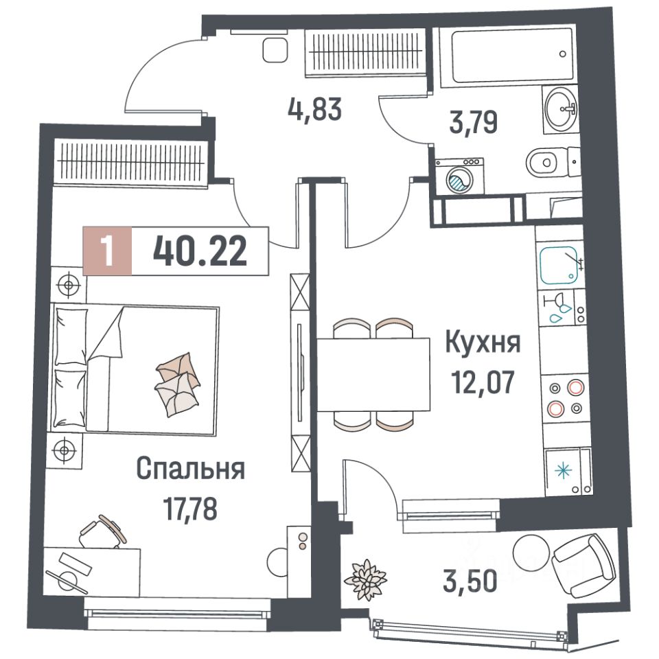 Общая площадь40,22 м²