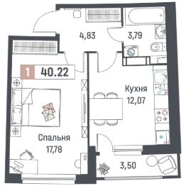 Общая площадь40,22 м²