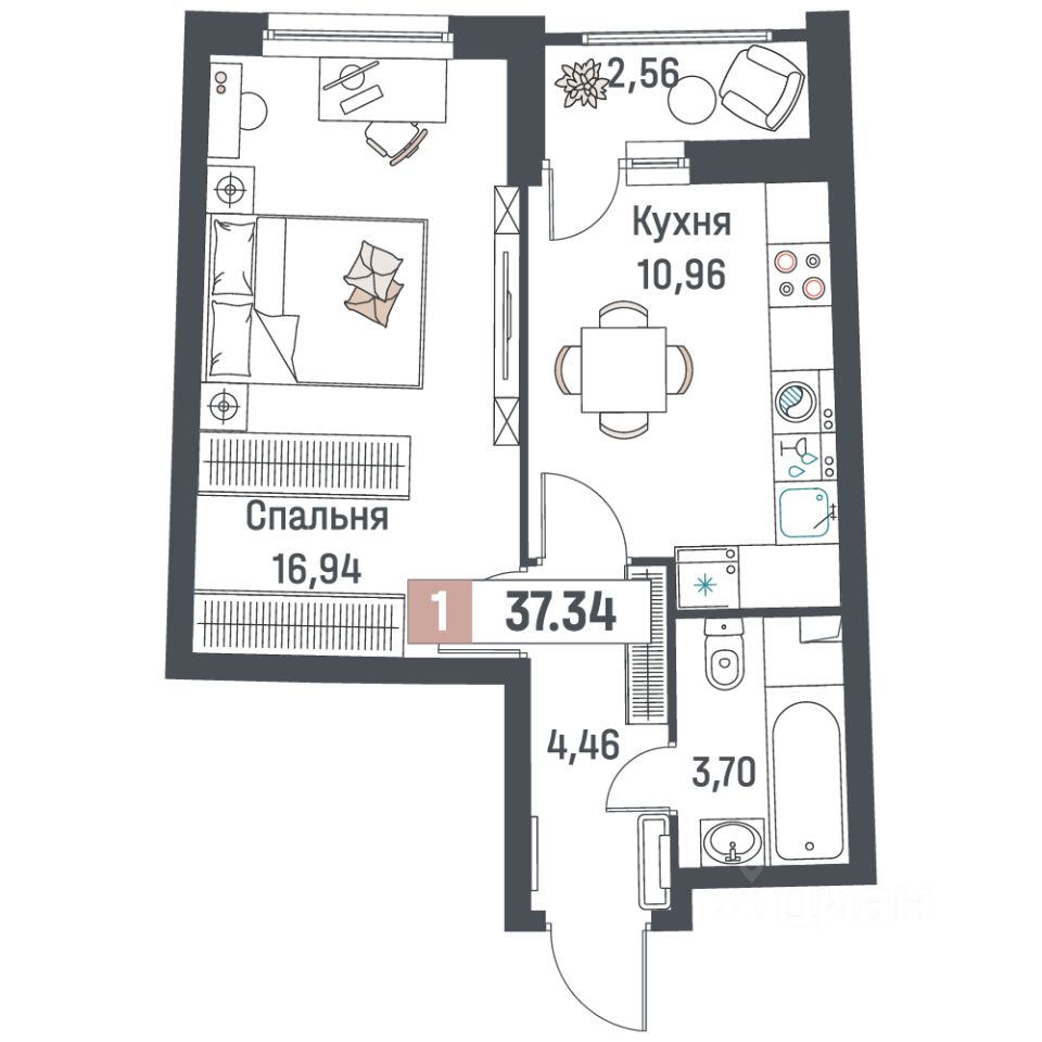Общая площадь37,34 м²