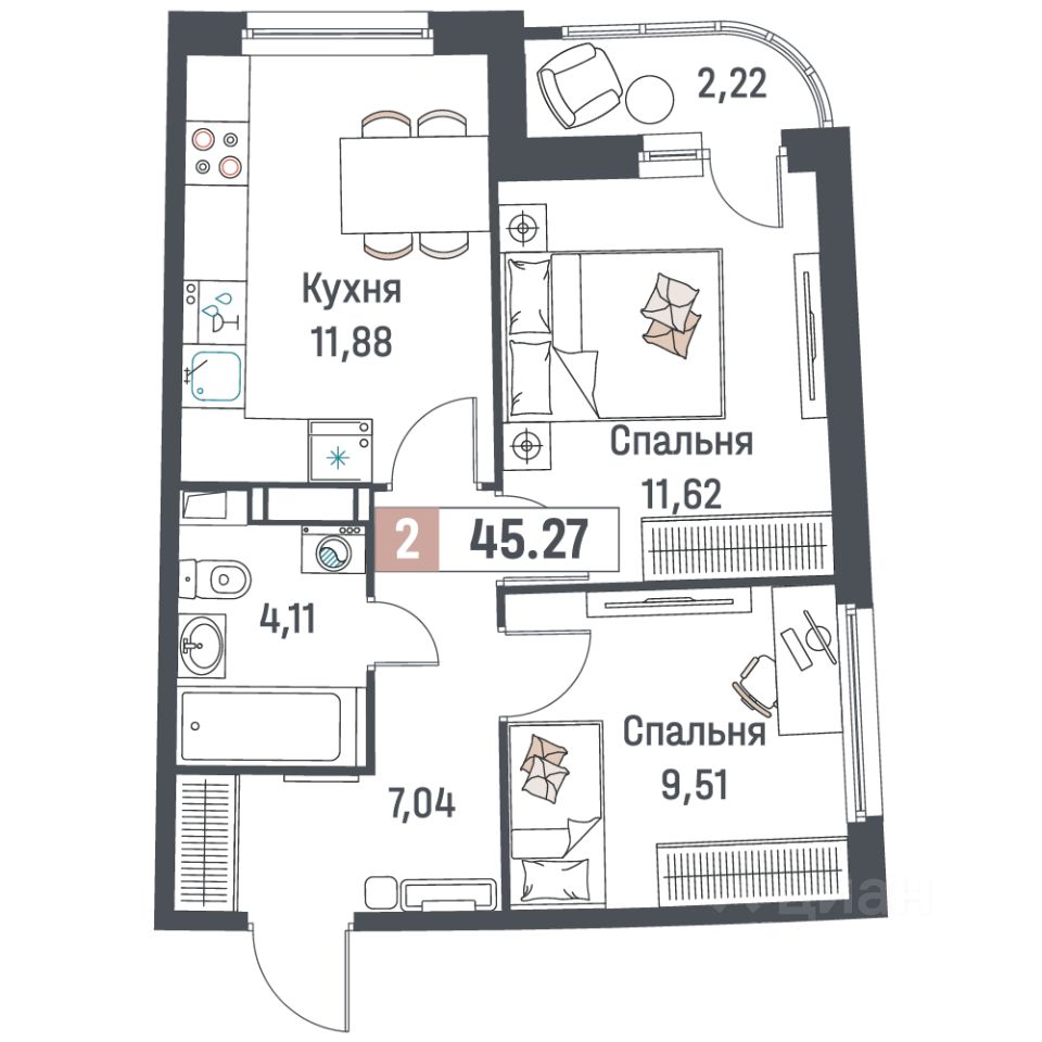 Общая площадь45,27 м²