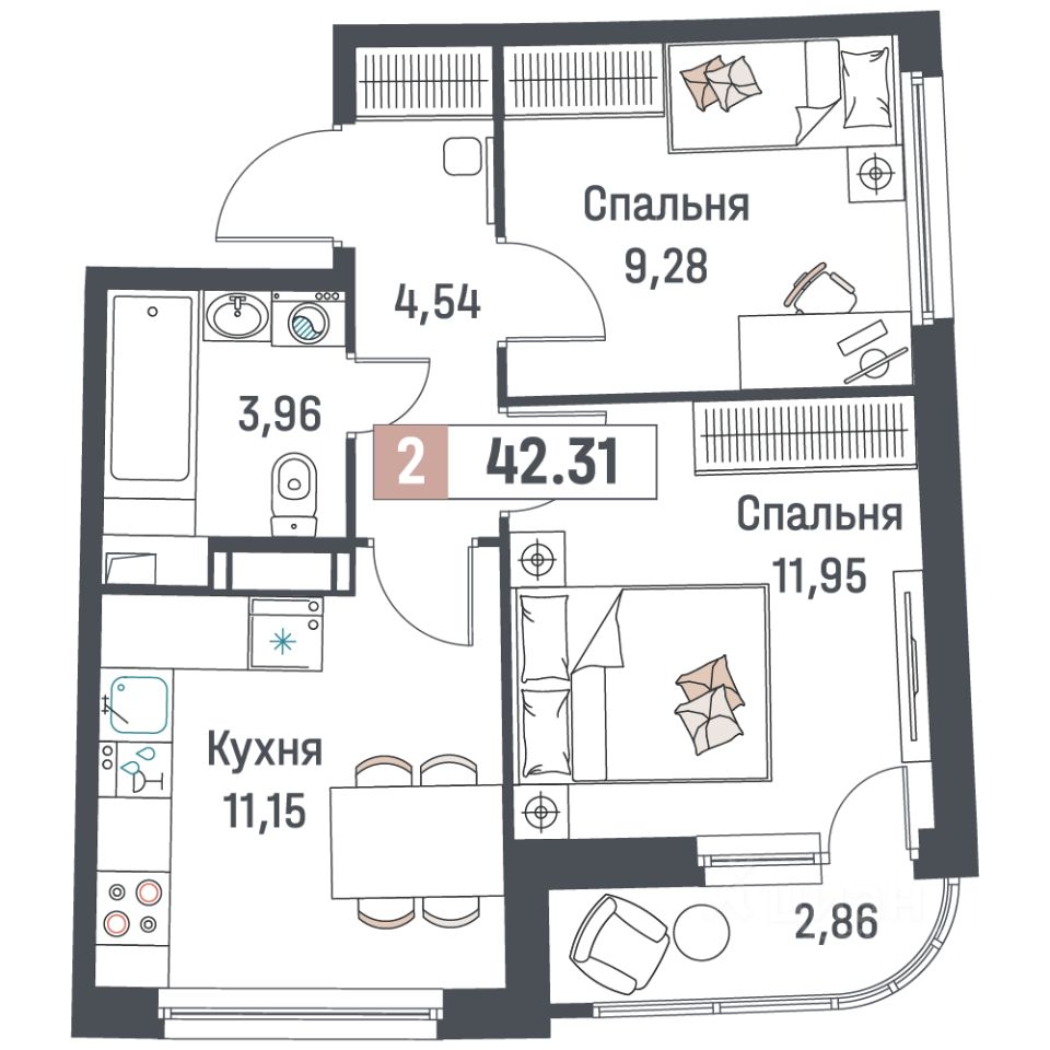 Общая площадь42,31 м²
