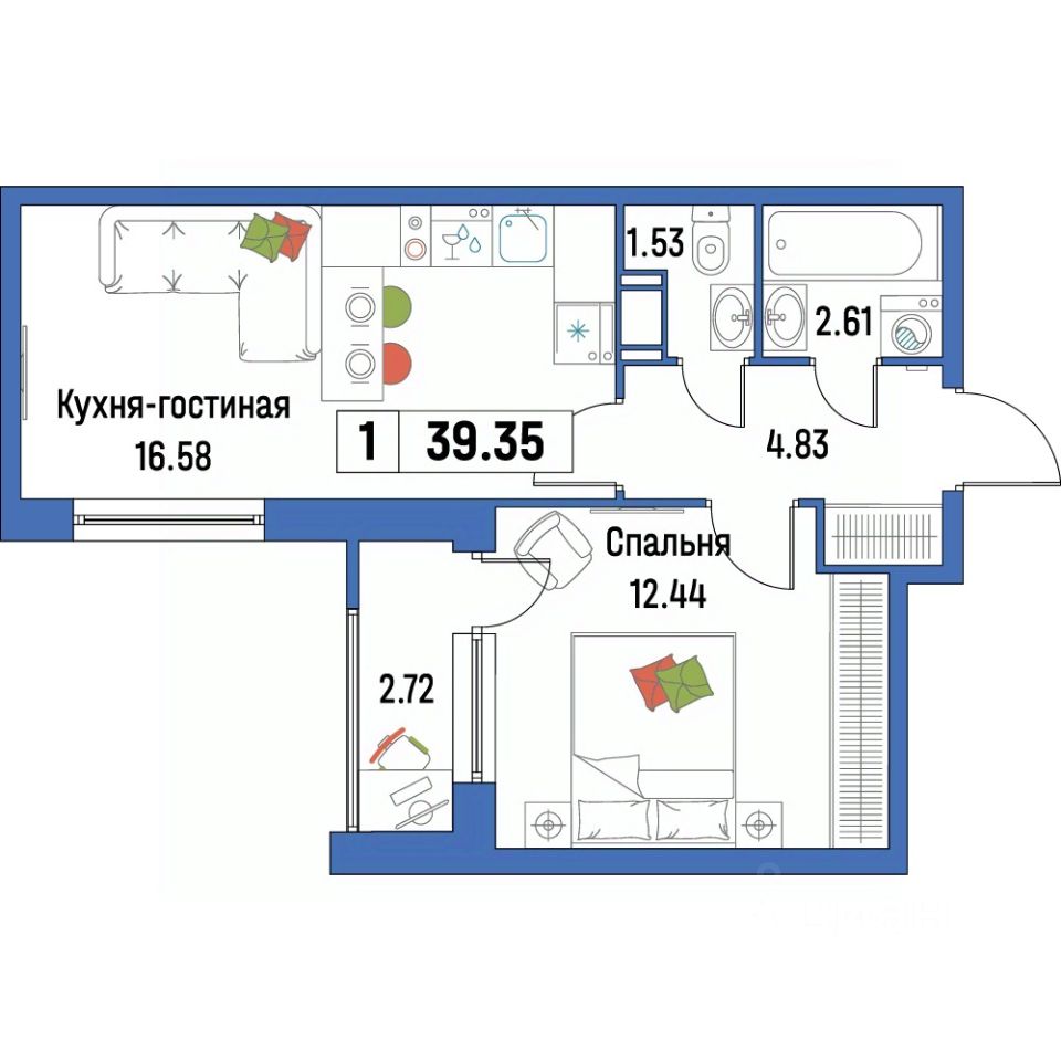 Общая площадь39,35 м²