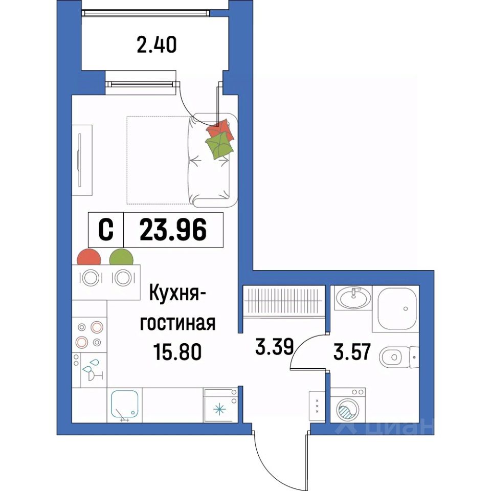 Общая площадь23,96 м²