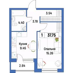 Общая площадь37,75 м²