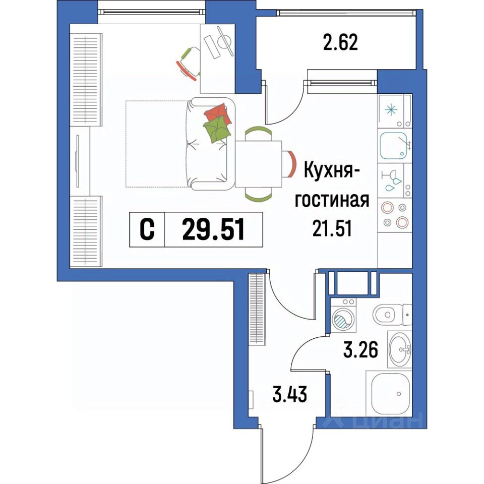 Общая площадь29,51 м²