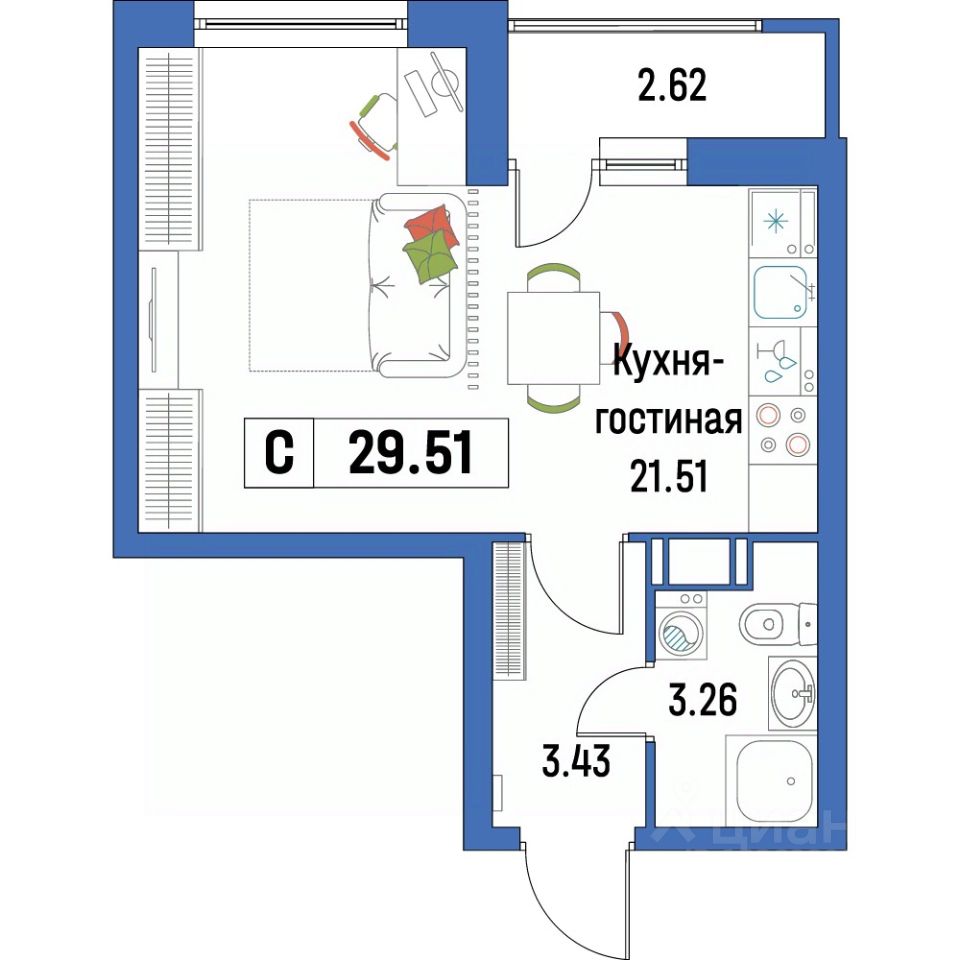 Общая площадь29,51 м²