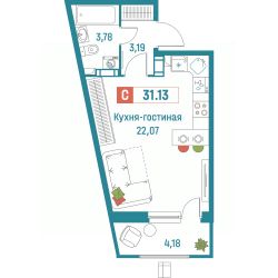 Общая площадь31,13 м²