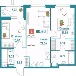 Общая площадь60,6 м²