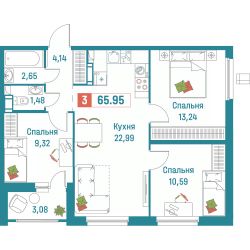 Общая площадь65,95 м²