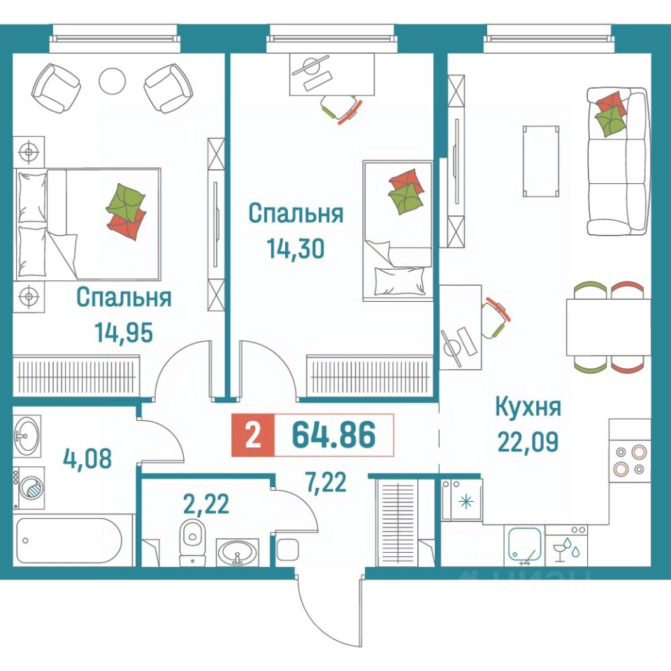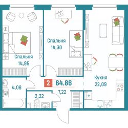 Общая площадь64,86 м²