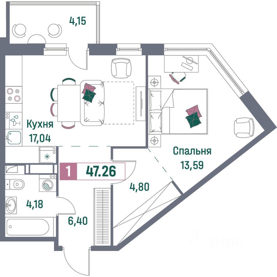 Общая площадь47,26 м²