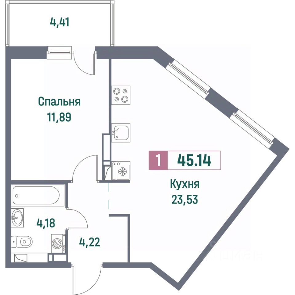 Общая площадь45,14 м²