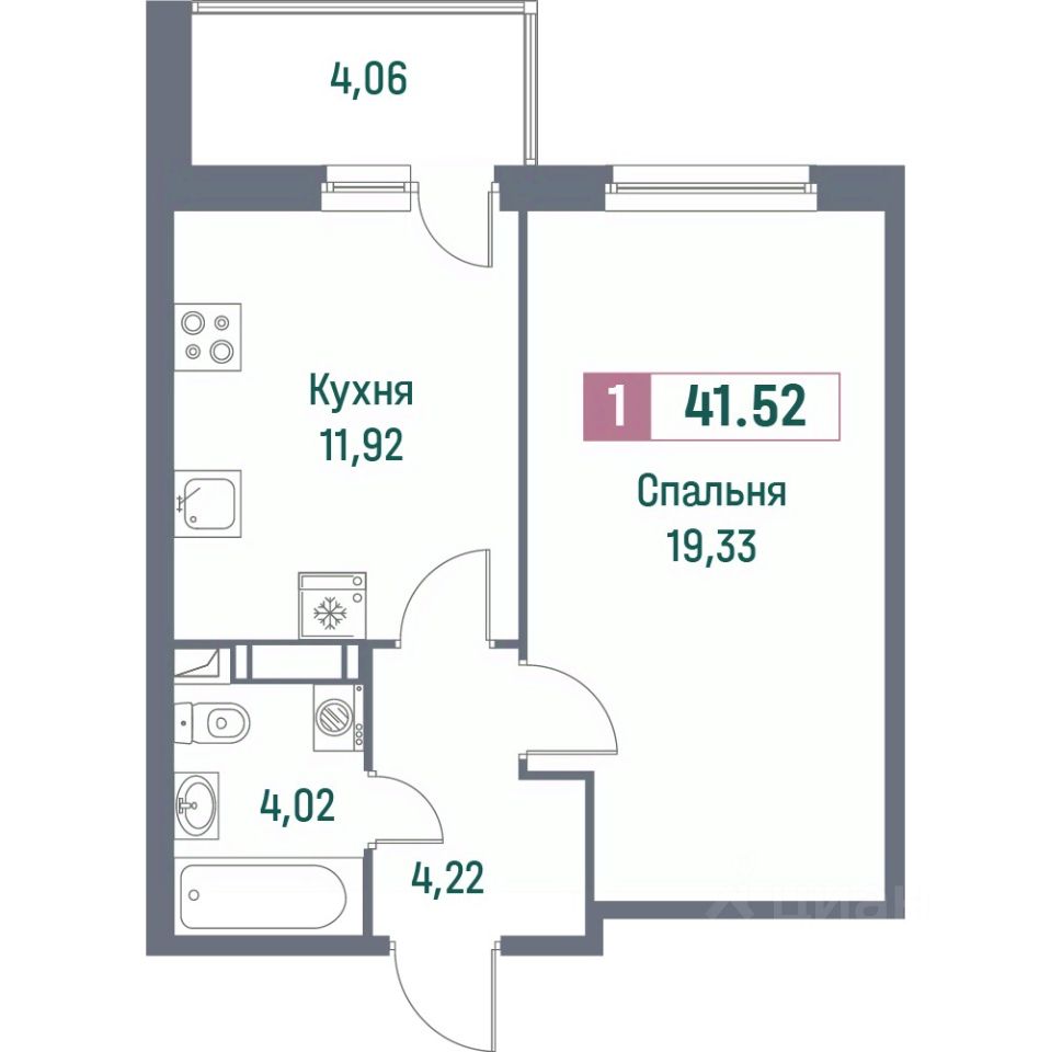 Общая площадь41,77 м²