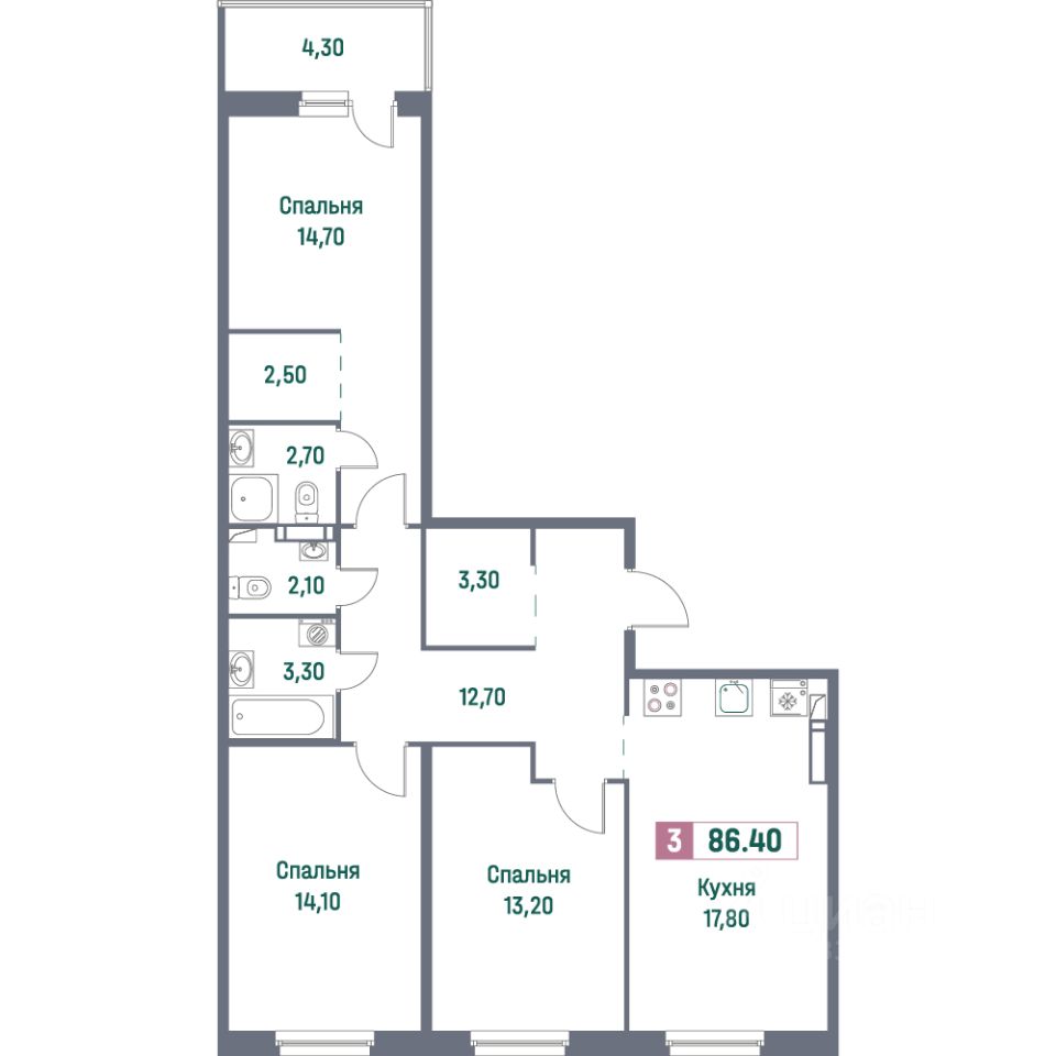 Общая площадь86,4 м²