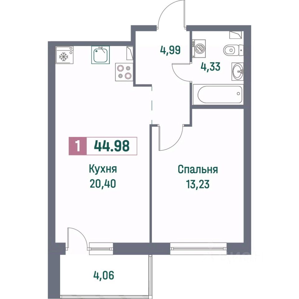 Общая площадь44,98 м²