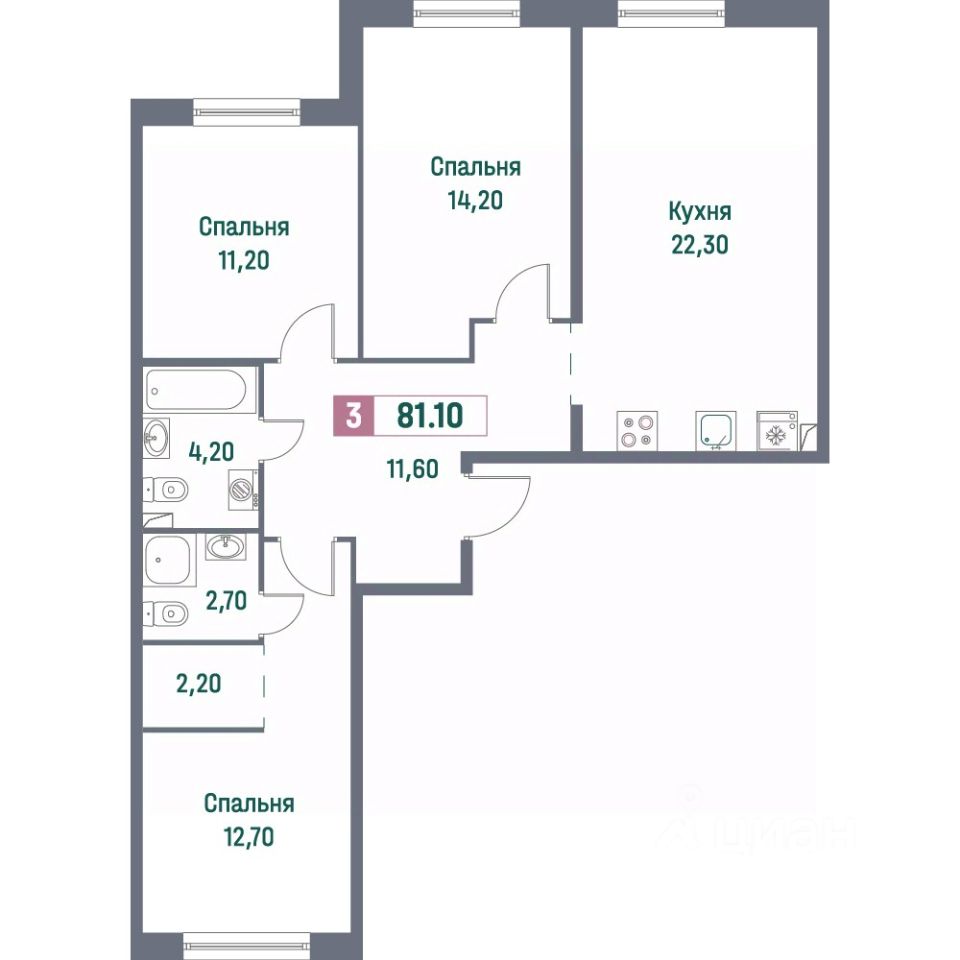 Общая площадь81,1 м²