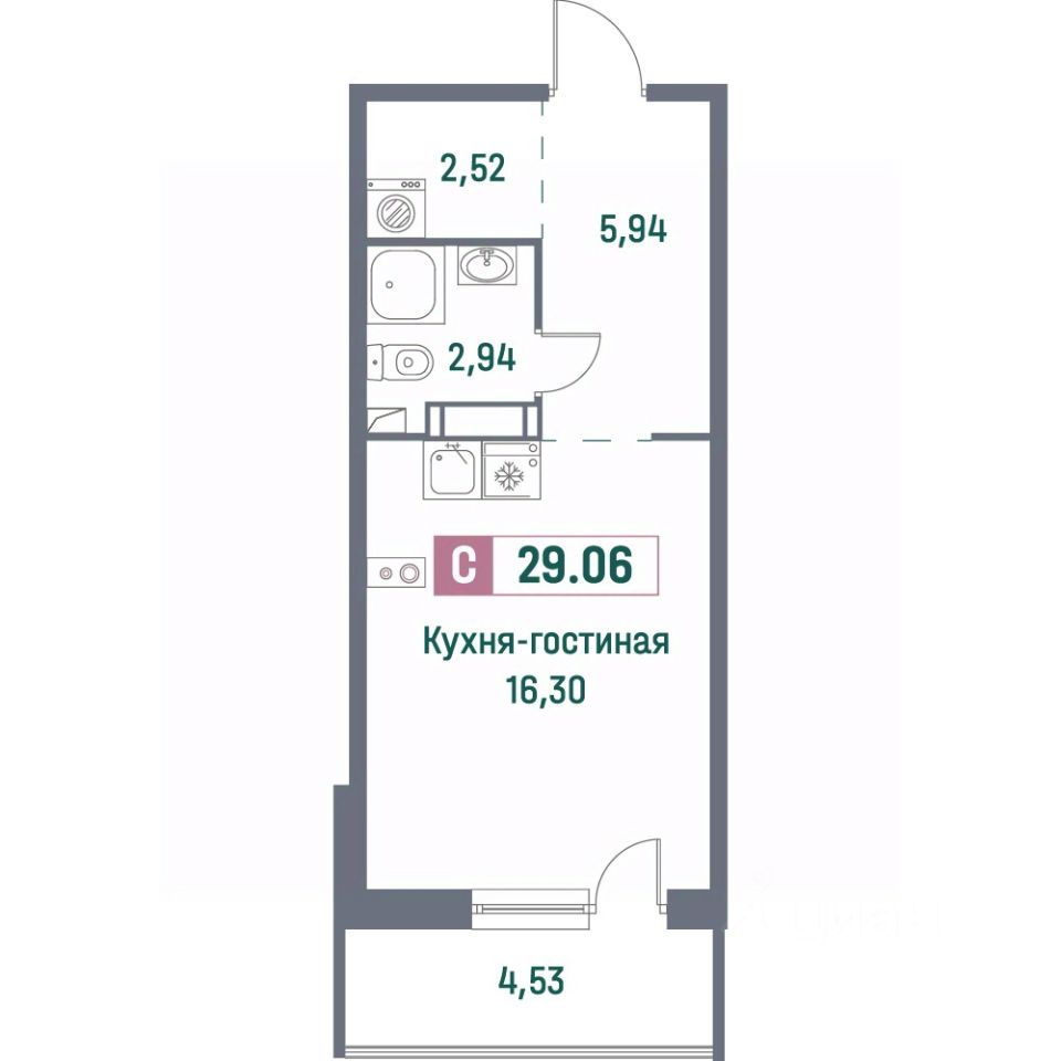 Общая площадь29,06 м²