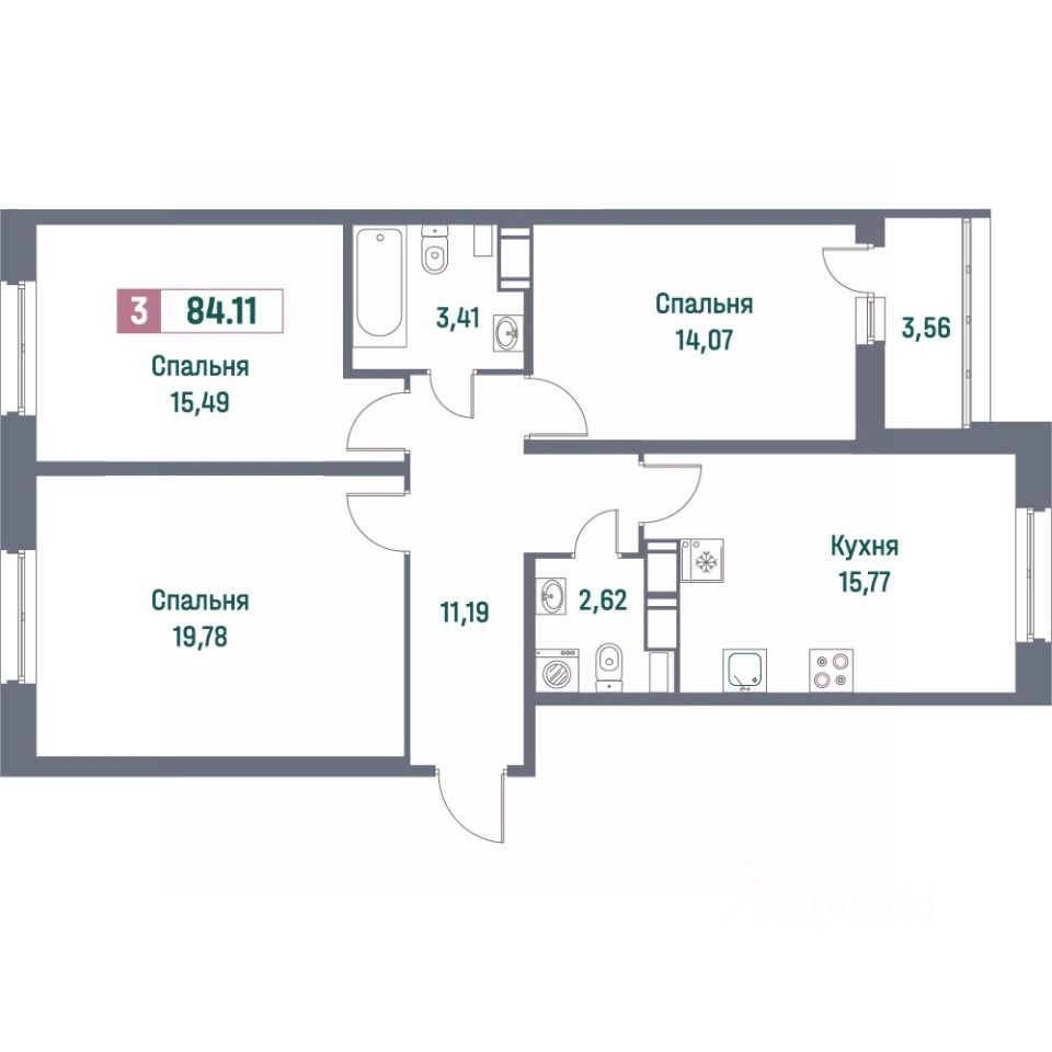 Общая площадь84,11 м²