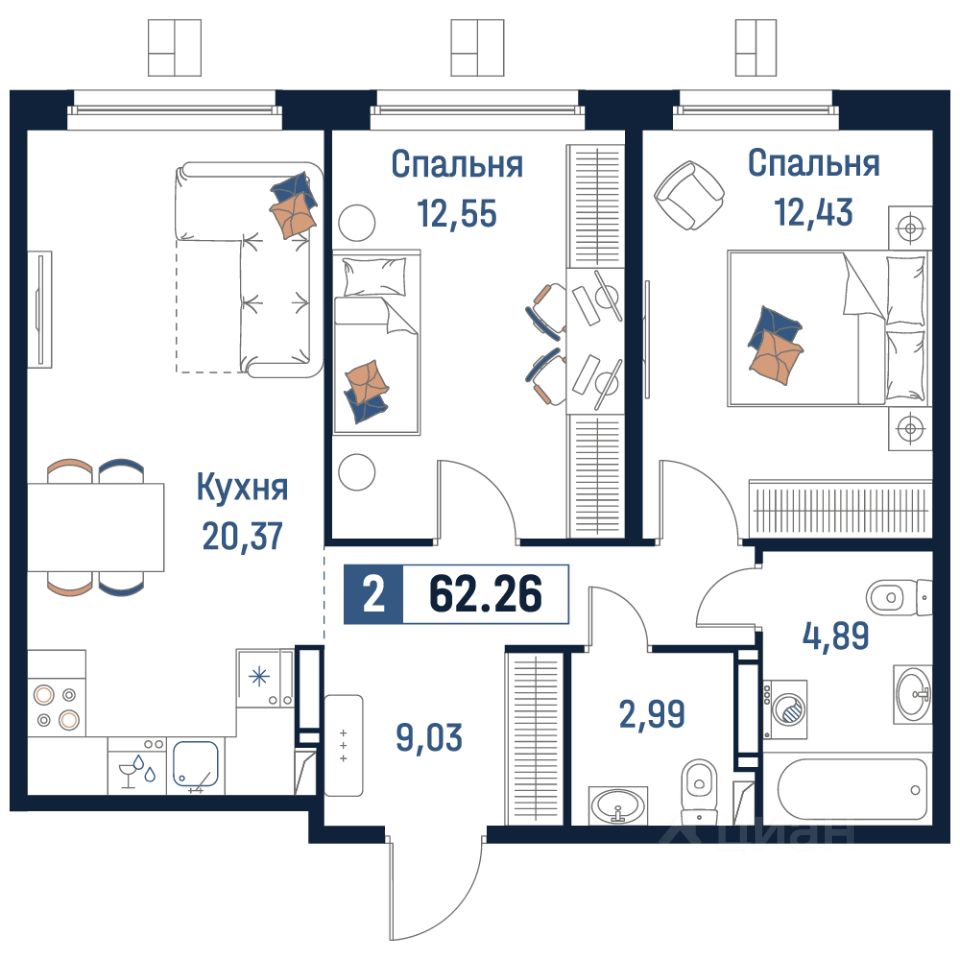 Общая площадь62,26 м²